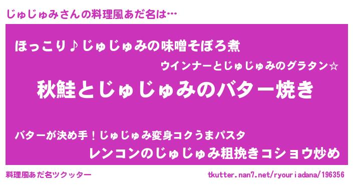 | 男性向けラノベタイトル風あだ名 | 『じゅじゅみという概念が存在しない退屈な世界 』 |