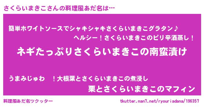 | 恥ずかしいあだ名 | 『プリティーさくらいまきこ』『さくちん』 |