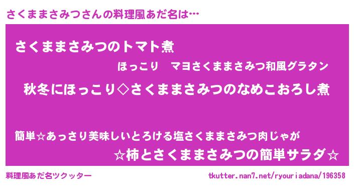| 男性向けラノベタイトル風あだ名 | 『さくままさみつに滅ぼされるだけの簡単なお仕事です』 |