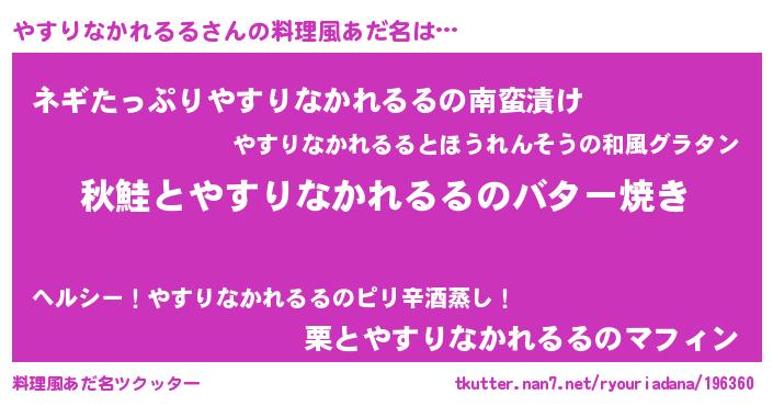 | ヘコむあだ名 | 『やすりなかれるる(小並感)』『酢こんぶ』 |