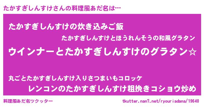 | 意味不明あだ名 | 『たかすぎしんすけフォーエバー』 |