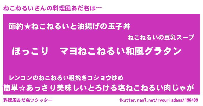 | 意味不明あだ名 | 『住所不定無職ねこねるい(81歳)』 |