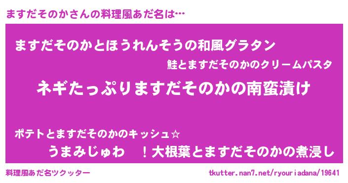 | ヘコむあだ名 | 『ますふぇ~』『なまこ酢』『ますお』 |