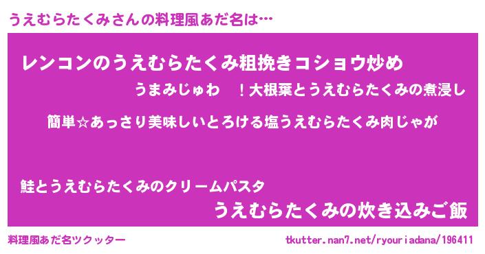 | ヘコむあだ名 | 『うえむらたくみ(爆)』『酢こんぶ』 |