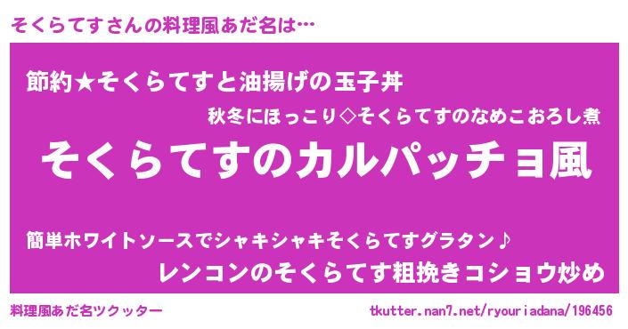 | 意味不明あだ名 | 『住所不定無職そくらてす(8歳)』 |