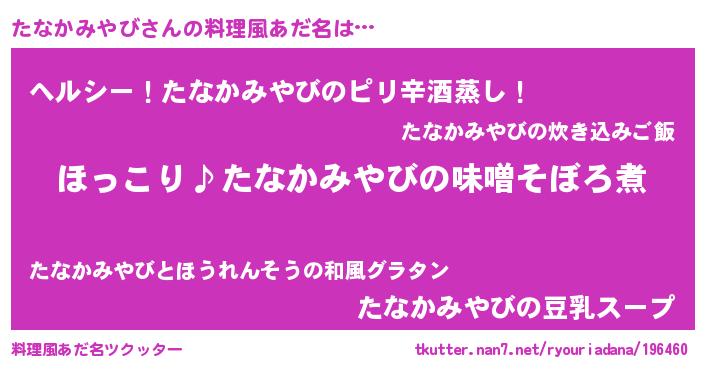 | ヒーロー風カッコイイあだ名 | 『スーパータナカミヤビ』『天弓騎士タナ』 |