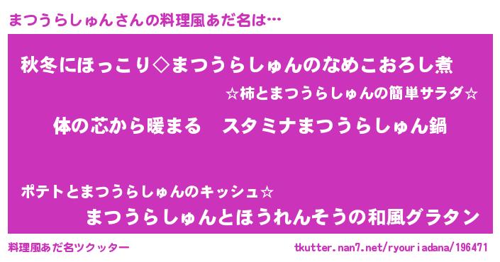 | 肩書あだ名 | 『まつうらしゅん国家主席』 |