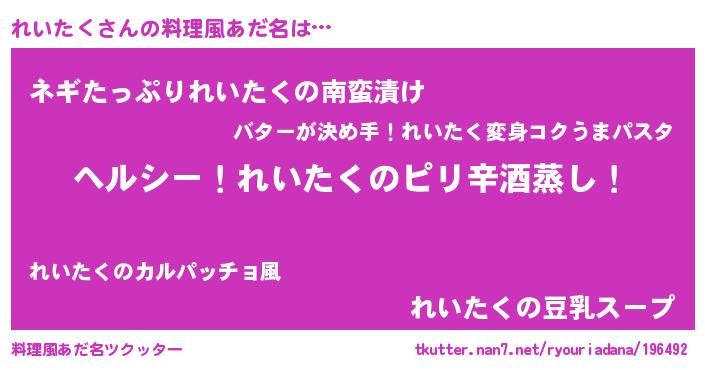 | 男性向けラノベタイトル風あだ名 | 『Re:れいたくから始める異世界生活』 |
