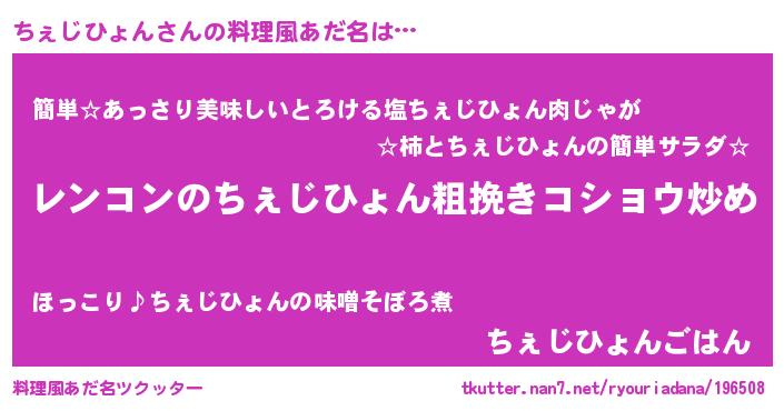 | 胡散臭い通販商品みたいなあだ名 | 『テレビで話題の高麗人参…その名も「ちぇじひょん」』 |