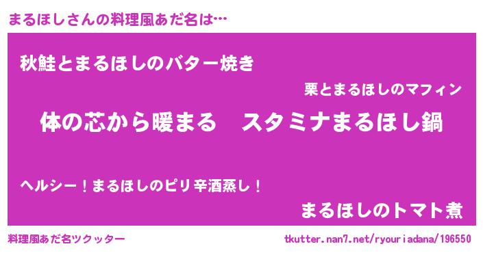 | 女子向けラノベタイトル風あだ名 | 『まるほしの雑貨屋さん』『闇のまるほし』 |