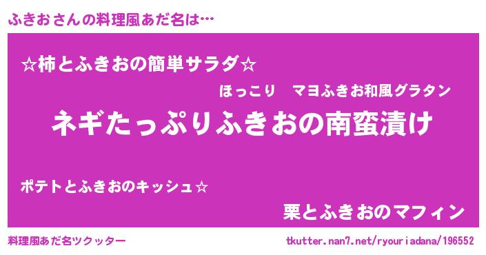 | ヘコむあだ名 | 『ふきっふぃ~』『ふきお』 |
