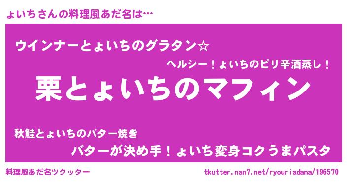 | 意味不明あだ名 | 『ょいちフォーエバー』『自称ょいち』 |