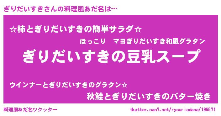 | ヘコむあだ名 | 『ぎりっぺ』『ぎりだいすき(苦笑)』 |
