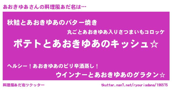 | ポケモン風あだ名 | 『ヒアオキユア』『ゼニアオ』 |