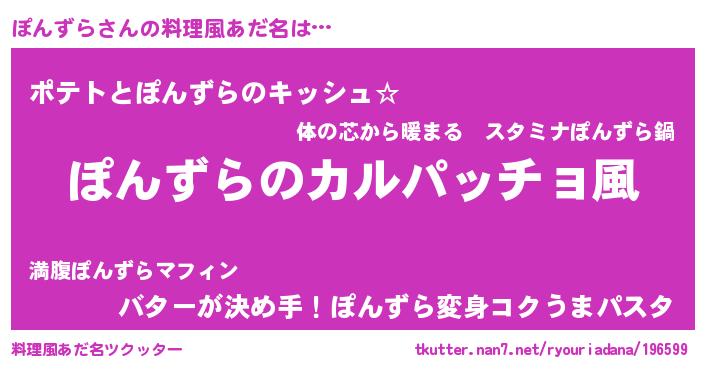 | 男性向けラノベタイトル風あだ名 | 『魔弾の王とぽんずら』 |