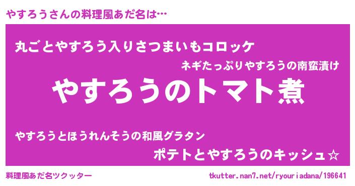 | ヒーロー風カッコイイあだ名 | 『正義の使者やすろう』『仮面ヤスダー』 |
