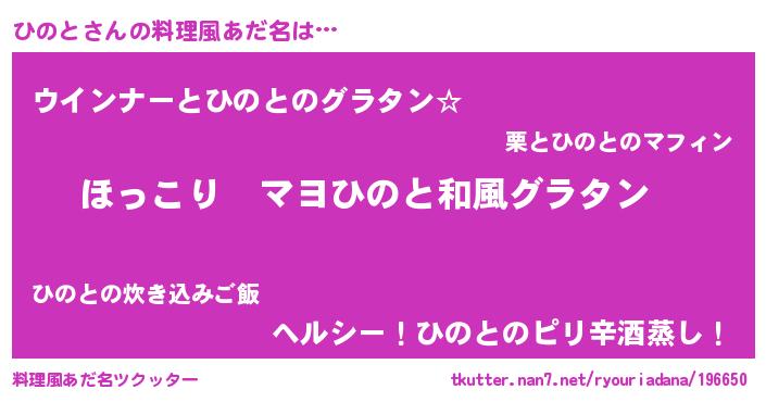 | 男性向けラノベタイトル風あだ名 | 『この素晴らしい世界にひのとを!』 |