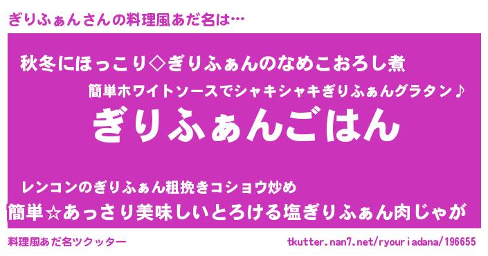 | ヘコむあだ名 | 『ぎりふぁん(笑)』『ぎりぷりん』 |
