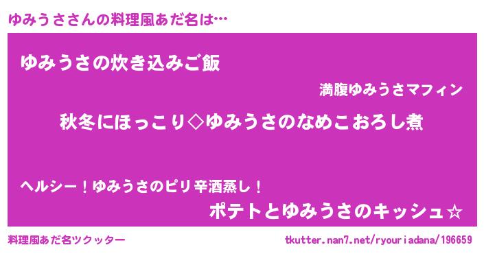 | 胡散臭い通販商品みたいなあだ名 | 『伝統あるサプリメント…その名も「ゆみうさ」』 |