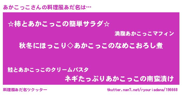 | 意味不明あだ名 | 『ペロリンあかこっこ』『自称あかこっこ』 |