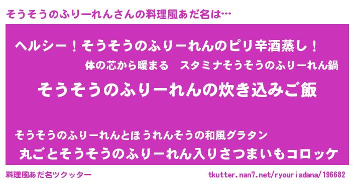 | 意味不明あだ名 | 『自称そうそうのふりーれん』 |