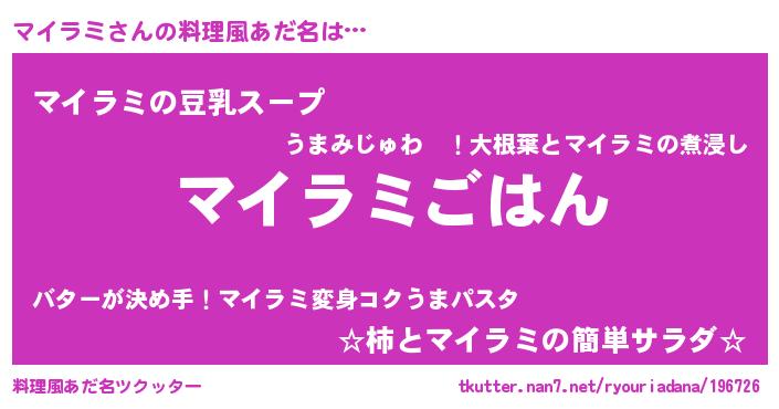 | 男性向けラノベタイトル風あだ名 | 『マイラミスレイヤー』『緋弾のマイラミ』 |