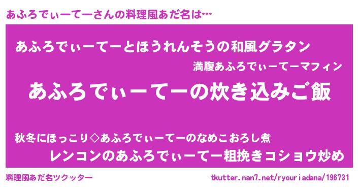 | ヘコむあだ名 | 『あふろでぃーてー(震え声)』『レバニラ』 |