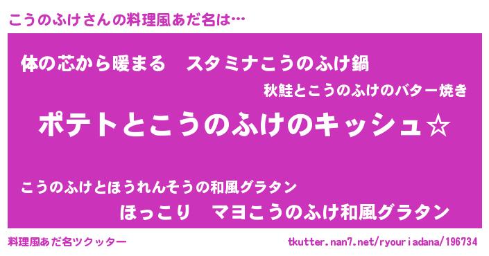 | 胡散臭い通販商品みたいなあだ名 | 『伝統あるサプリメント…その名も「こうのふけ」』 |