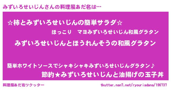 | 男性向けラノベタイトル風あだ名 | 『転生したらみずいろせいじんだった件』 |