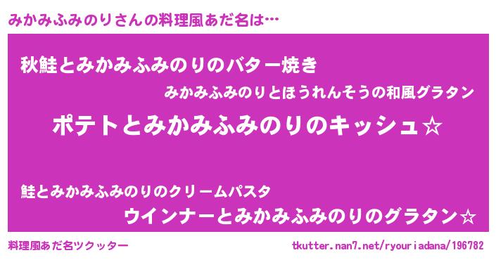 | 男性向けラノベタイトル風あだ名 | 『みかみふみのりの嫁は女の子じゃないと思った?』 |