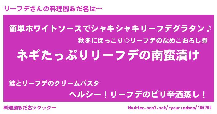 | ファンタジー風あだ名 | 『リーフェル』『ファントムリース』 |