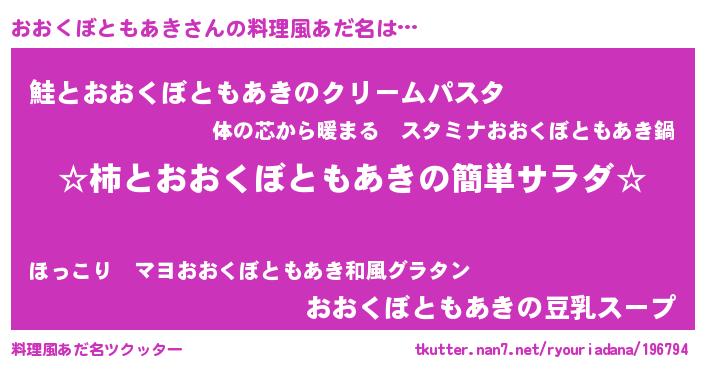 | 意味不明あだ名 | 『眠気覚ましガムおおくぼともあき味』 |