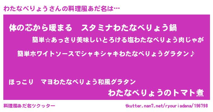 | ポケモン風あだ名 | 『ヒワタナベリョウ』『ワタナダネ』 |