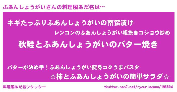 | ヘコむあだ名 | 『ふあんしょうがい(遠い目)』『ふあ太郎』 |