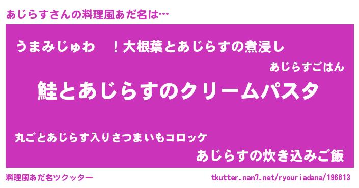 | ヒーロー風カッコイイあだ名 | 『慈愛の使者あじらす』『仮面アジダー』 |