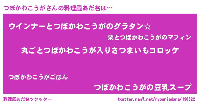 | 女子向けラノベタイトル風あだ名 | 『乙女ゲームの破滅フラグしかない悪役つぼかわこうがに転生してしまった…』 |