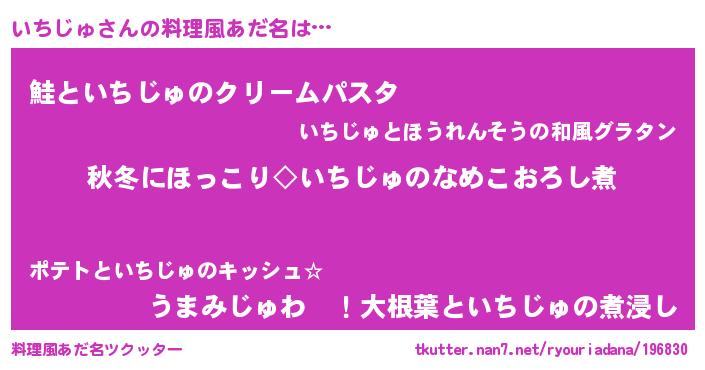 | 男性向けラノベタイトル風あだ名 | 『いちじゅに滅ぼされるだけの簡単なお仕事です』 |