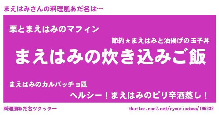 | 意味不明あだ名 | 『自称まえはみ』『ペロリンまえはみ』 |