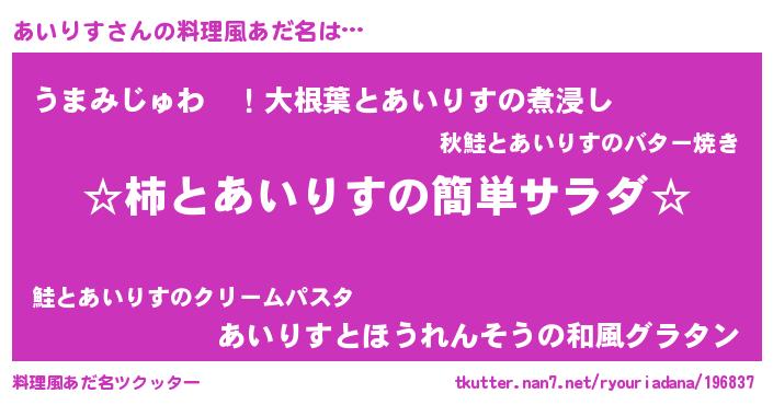 | 意味不明あだ名 | 『あいりすフォーエバー』『自称あいりす』 |