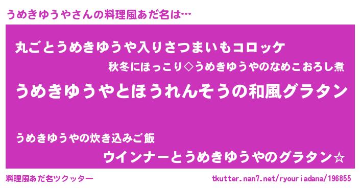 | 女子向けラノベタイトル風あだ名 | 『うめきゆうやの玉の輿計画!』 |