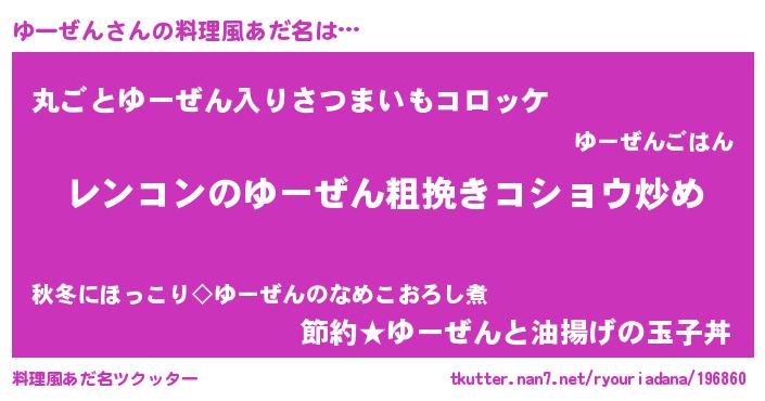 | 意味不明あだ名 | 『自称ゆーぜん』『ペロリンゆーぜん』 |