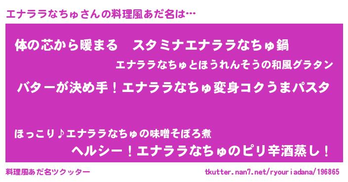 | ヘコむあだ名 | 『豆乳』『エナっふぃ~』『エナを』 |