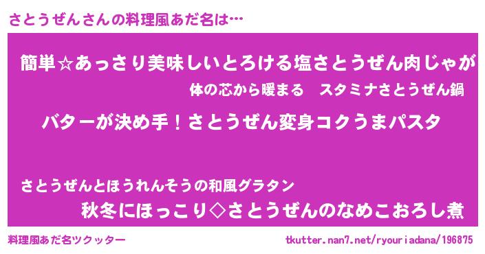 | ポケモン風あだ名 | 『サックウザ』『ゼニサト』 |