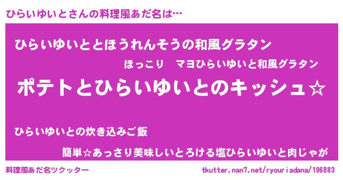 | ポケモン風あだ名 | 『ヒヒライユイト』『ヒラキング』 |