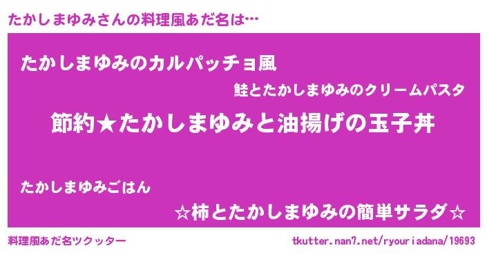 | 男性向けラノベタイトル風あだ名 | 『タカシマユミアートオンライン』 |