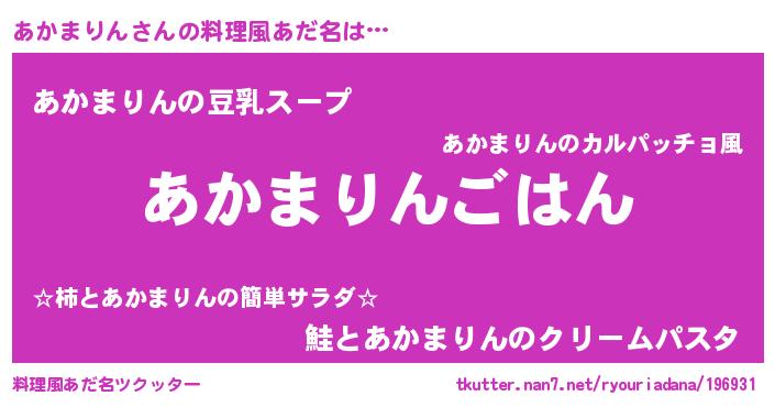 | ヒーロー風カッコイイあだ名 | 『黄金騎士アカ』『愛の使者あかまりん』 |