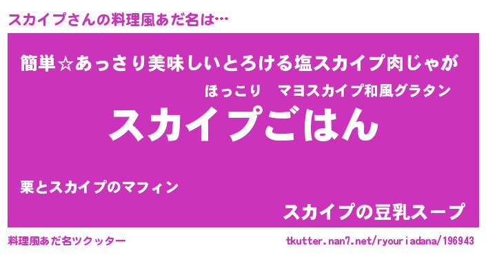 | 意味不明あだ名 | 『たけのこ科スカイプ属』 |