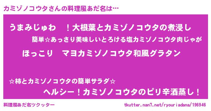 | 欧米人風あだ名 | 『ダレノガレカミゾノコウタ』 |