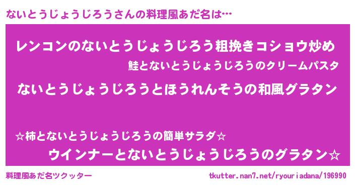 | 女子向けラノベタイトル風あだ名 | 『ないとうじょうじろうの玉の輿計画!』 |