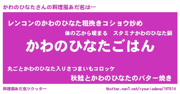 | 意味不明あだ名 | 『めかぶ科かわのひなた属』 |